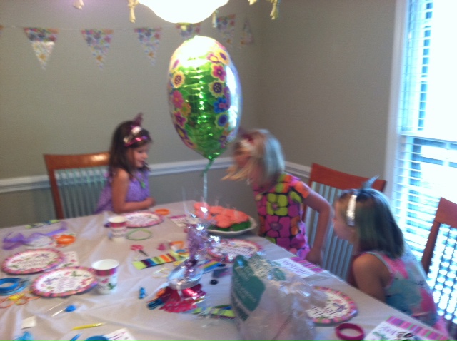 One thing I will have to say about the party that definitely made all the difference were my three helpers: my 12 yo daughter and two of her friends. These girls came over an hour before the party, organized the kits, read the instructions and mapped out a plan of action as to how they were going to instruct and help the girls. I hate to think of what I would have done without them. Thanks girls!